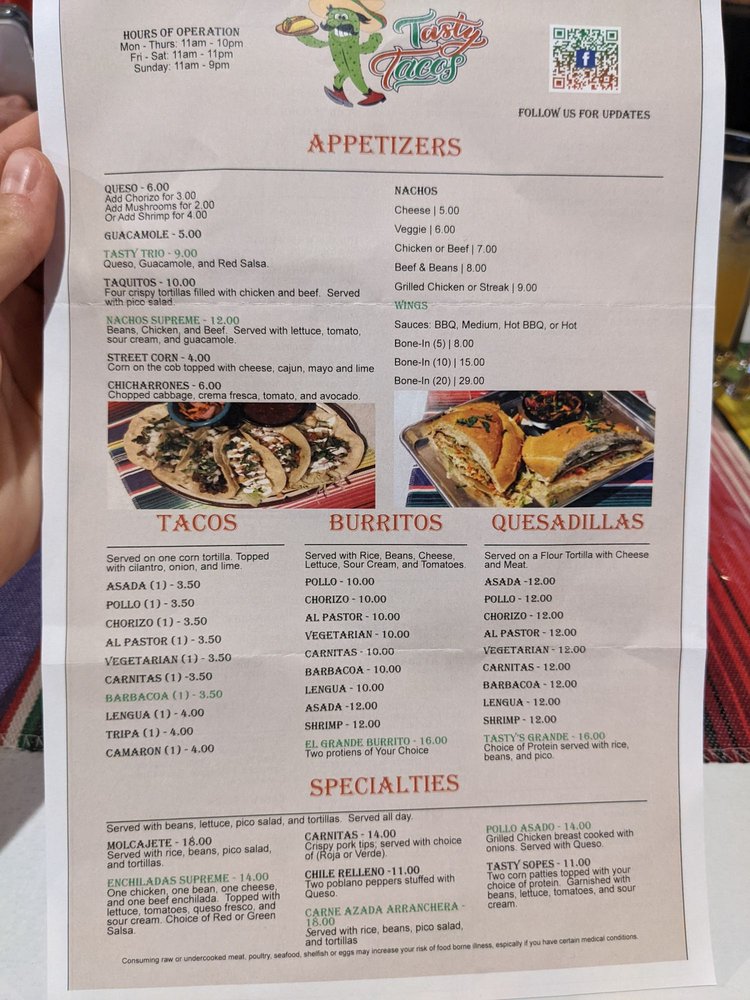 Introducing the menu at Tasty Tacos, a vibrant gem located at 1776 E Dublin Granville Rd, Columbus, OH. Specializing in authentic Mexican cuisine, Tasty Tacos is designed to delight with a diverse array of mouthwatering dishes. From sizzling Camarones a la Diabla to hearty molcajete loaded with shrimp, beef, chicken, and chorizo, each meal captures the essence of traditional Mexican flavors.